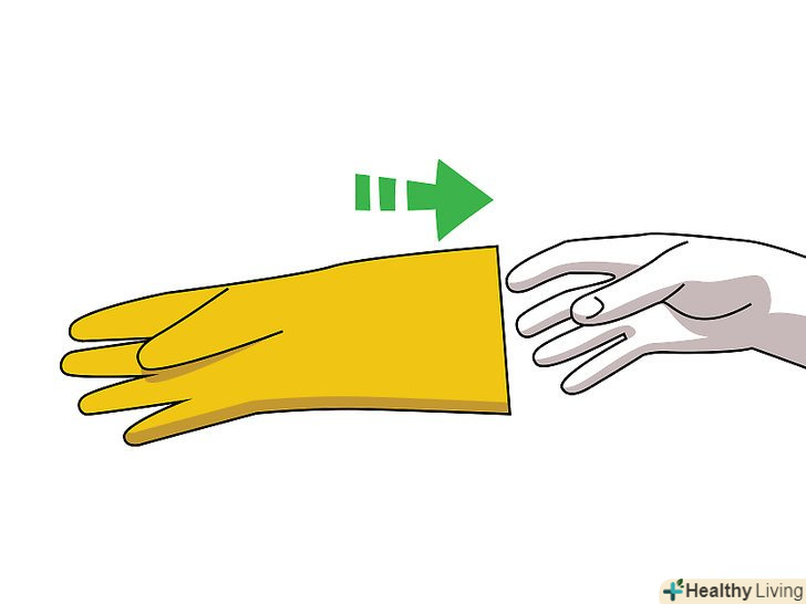 Одягніть рукавички. оскільки відбілювач шкідливий для шкіри, обов'язково надягайте захисні рукавички, перш ніж приступити до видалення відбілювача з килима. Рукавички слід надягати, навіть якщо відбілювач вже висох, оскільки навіть при відсутності вологи хімічні речовини залишаються активними. [9]