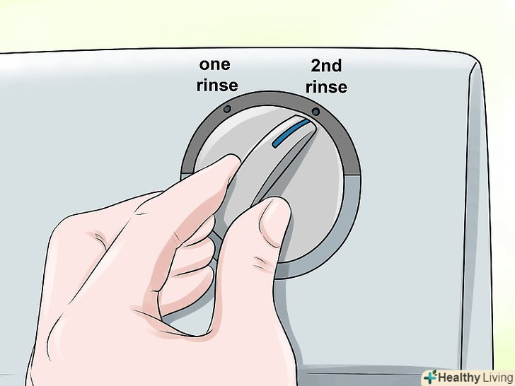 Як слід споліскуйте одяг. цикл полоскання необхідний для того, щоб видалити з тканини залишки миючого засобу, бруду і сміття. Якщо погано сполоснути одяг, брудна вода може вбратися в білу тканину. Якщо є така можливість, споліскуйте білі речі два рази, щоб напевно очистити їх від залишків миючого засобу і бруду. [9]- Другий цикл полоскання може призвести до додаткових витрат. Щоб уникнути цього, можна не полоскати речі двічі, а просто уважно стежити за чистотою пральної машини і використовувати відповідну кількість прального порошку. Ніколи не перевищуйте рекомендовану дозу миючого засобу.