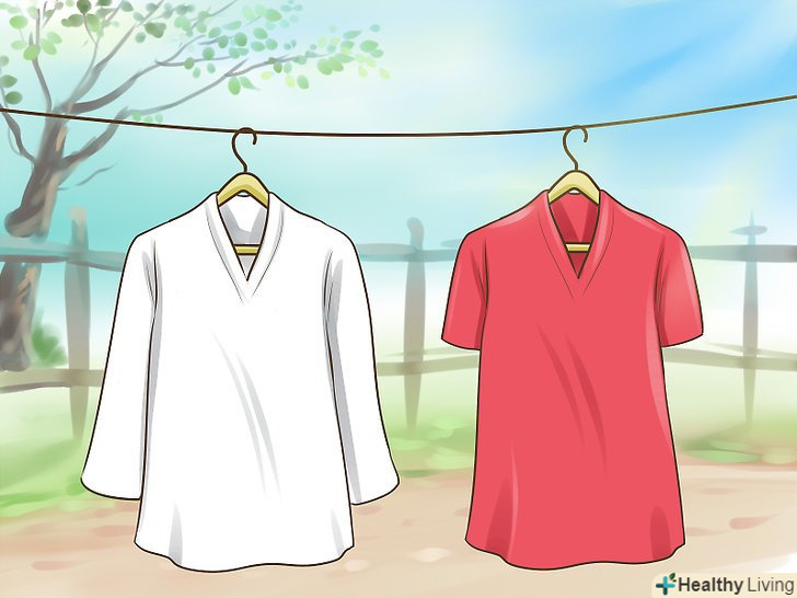 Не використовуйте сушильну машину. під дією тепла сушильної машини плями можуть проникнути в тканину ще глибше. По можливості уникайте сушильної машини і сушіть речі на повітрі. Крім інших переваг, в цьому випадку білі речі прослужать довше, так як занадто високі температури в сушильній машині пошкоджують тканину, і вона швидше зношується, в результаті чого вам частіше доведеться купувати новий одяг. [10]