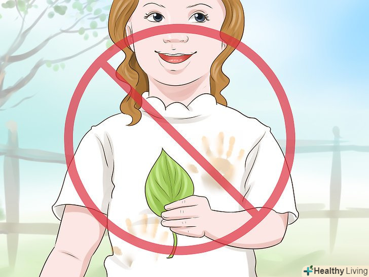 Намагайтеся не надягати білі речі на дітей. безумовно, діти виглядають чарівно в ошатному білому одязі. Однак білосніжний одяг, швидше за все, незабаром покриється плямами від бруду і їжі. Діти швидко бруднять свій одяг. Щоб запобігти цьому, найлегше взагалі не надягати на дітей білі речі.- Якщо вам доводиться одягнути дитину в щось біле, постарайтеся видалити брудні плями відразу ж, як тільки дитина переодягнеться.