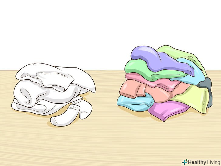 Розділіть білі та кольорові речі. можна навіть відокремити більш забруднені білі речі, наприклад нижню білизну і шкарпетки, від іншого білого одягу, такий як класичні сорочки, блузи тощо. Як би там не було, це абсолютно обов'язкова міра. [4]- Хоча у вас може виникнути бажання об'єднати білий одяг зі світлими або навіть світло-сірими речами, не робіть цього.