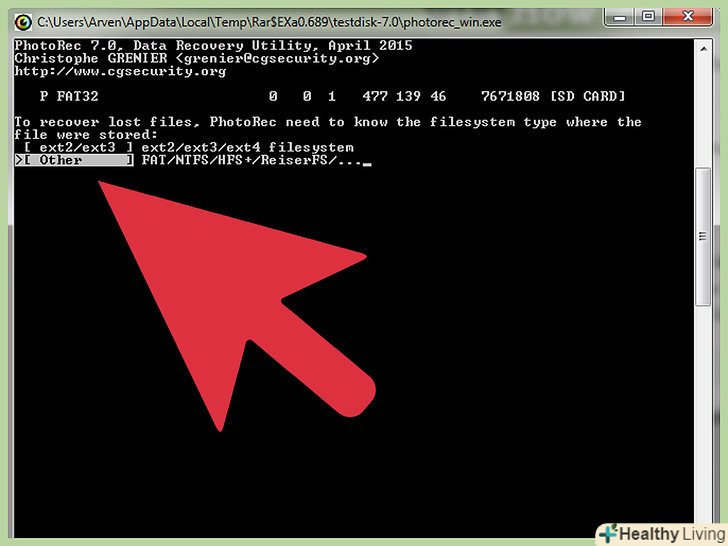 Виберіть файлову систему. якщо Ви відновлюєте файли з SD карти, то вибирайте Other.