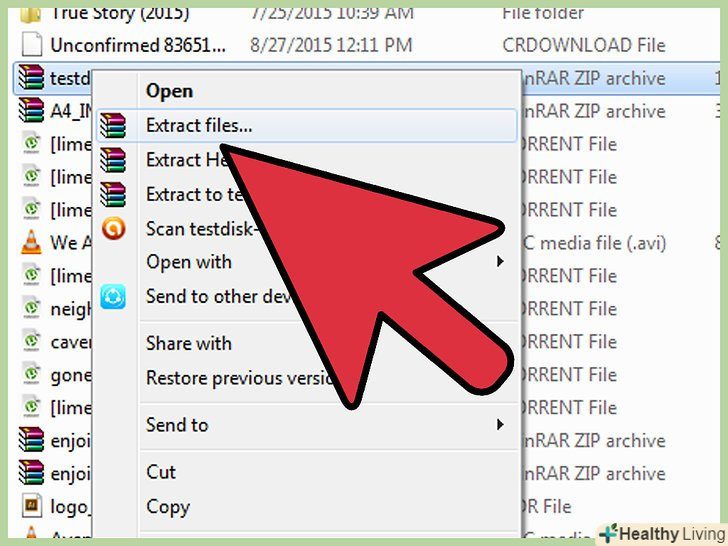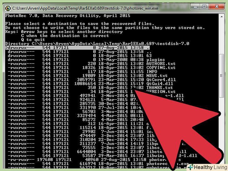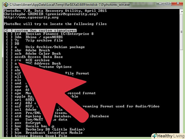 Розпакуйте програму. PhotoRec не вимагає установки. Просто розпакуйте програму photorec_os з Zip архіву. os означає вашу версію ОС. Наприклад, версія для Windows це photorec_win