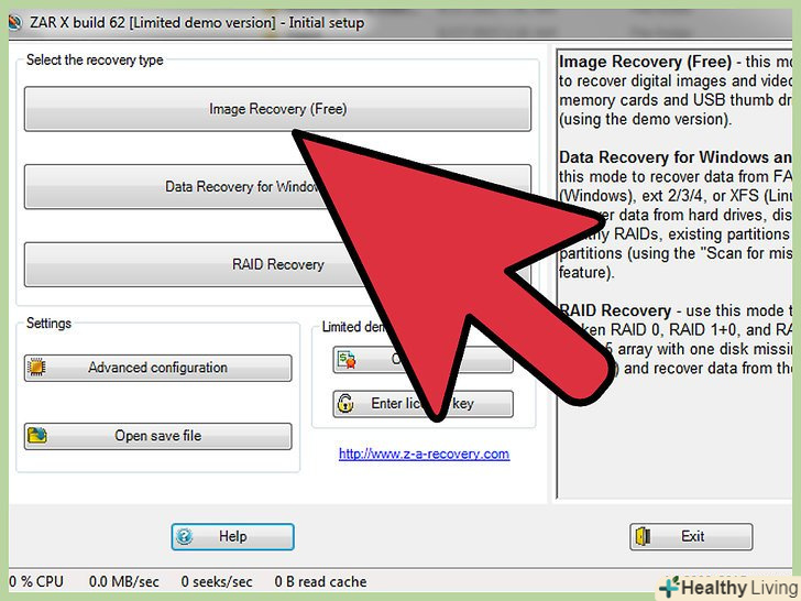 Відкрийте в ZAR Image Recovery tool (утиліту відновлення зображень).запустіть ZAR і натисніть Image Recovery (Free). В інших програмах шукайте аналогічну кнопку. Деякі програми пропускають цей крок.