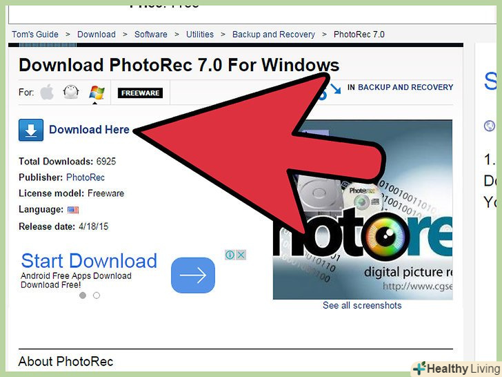 Завантажте PhotoRec. PhotoRec це безкоштовна утиліта для відновлення файлів з вільним кодом, яка працює в ОС Windows, OS X і Linux/