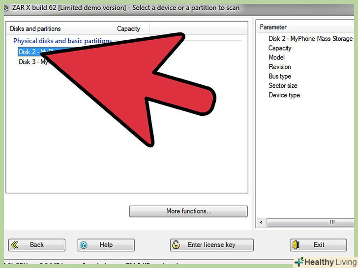 Виберіть вашу SD карту. у розділі " Disks and partitions "(Диски і розділи), Виберіть вашу SD карту. Вона повинна бути відзначена як SD card (SD карта). Натисніть кнопку < span class="nowrap" title= " This is not a clickable button; it illustrates the button one should find." style="font-family: Segoe UI, Frutiger, Frutiger Linotype, Dejavu Sans, Helvetica Neue, Arial, sans-serif;letter-spacing:0px;padding:0em .6em; border:1px solid; border-color:#AAA #555 #555 #AAA; -moz-border-radius: 0px; -webkit-border-radius: 0px; border-radius: 0px; background-color: #F2F2F2; background-image: -moz-linear-gradient(top, #FCFCFC, #E0E0E0); background-image: -o-linear-gradient(top, #FCFCFC, #E0E0E0); background-image: -webkit-linear-gradient(top, #FCFCFC, #E0E0E0); background-image: linear-gradient(Top, #fcfcfc, #e0e0e0);">next (Далі) щоб почати сканування.