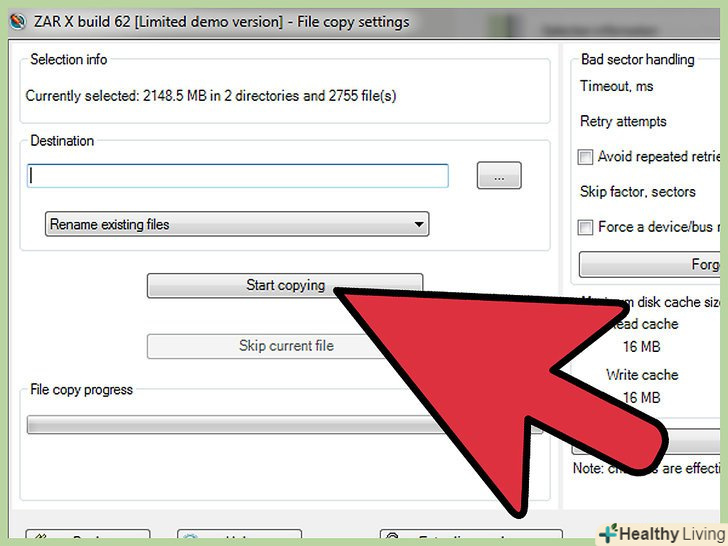 Скопіюйте файли. натисніть кнопку Start copying the selected files щоб відновити зображення. Вибрані вами файли будуть збережені в зазначену вами папку.- Можливо, деякі зображення повністю відновити не вдасться. Навіть якщо ескіз картинки виглядає нормально, саме по собі зображення може бути частково або повністю пошкоджено ("бите").