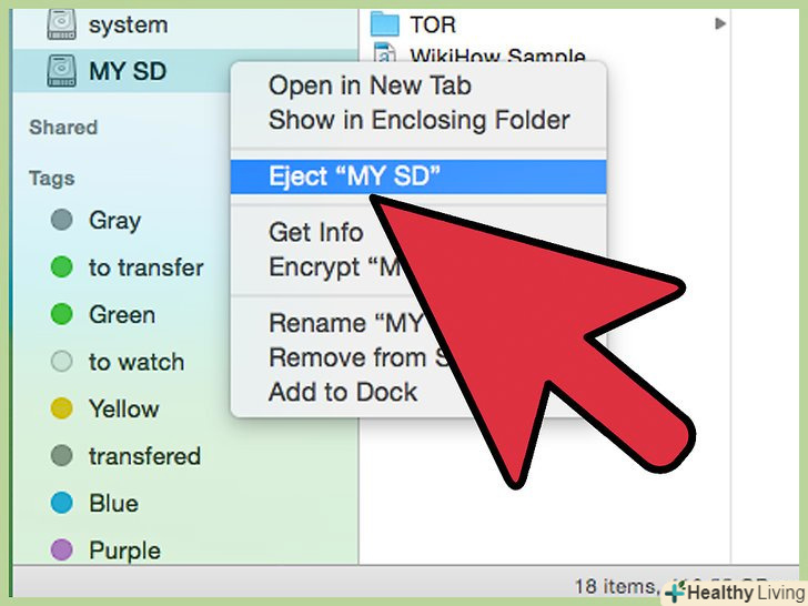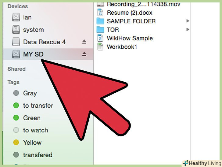 Вставте SD карту.вставте SD карту в ваш Mac. Якщо в ньому немає слота для SD карт, можете придбати зовнішній USB-картрідер або вставити карту в камеру і підключити камеру до комп'ютера.