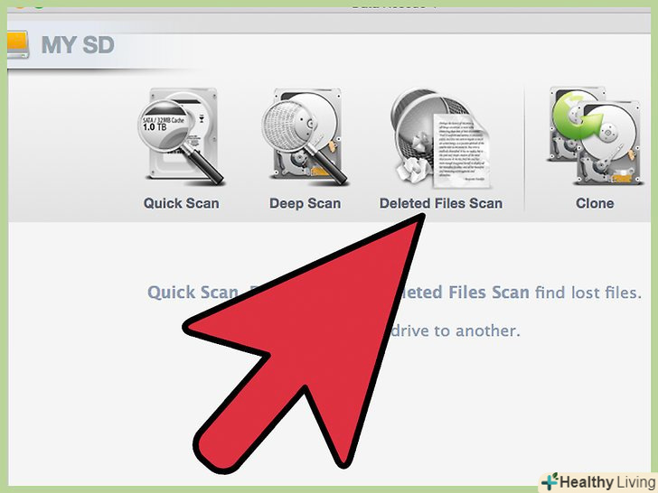 Виберіть метод сканування.для першої спроби виберіть метод "Deleted Files Scan" (пошук видалених файлів). Програма просканує вільне місце, щоб знайти видалені з SD карти файли. Якщо цей метод не принесе бажаних результатів, виберіть " Quick Scan "(Швидке сканування), а потім" Deep Scan " (Глибоке сканування). Вибравши метод натисніть кнопку Start.