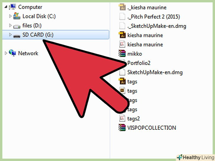 Вставте вашу SD карту в картрідер комп'ютера або в пристрій (наприклад, камеру) і підключіть пристрій до USB порту комп'ютера.- Комп'ютер може запропонувати відформатувати карту або видати повідомлення, що карта не читається. Не форматуйте карту, оскільки наявні на карті зображення можуть бути перезаписані поверх.
