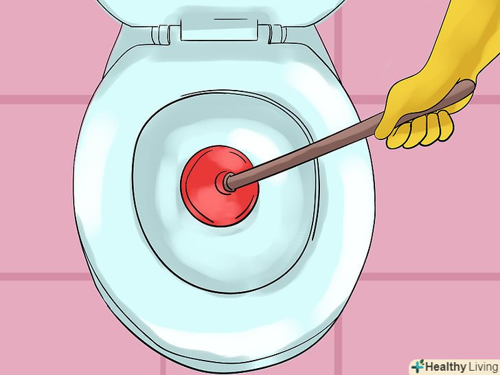 Накрийте підлогу навколо унітазу. візьміть кілька рушників або поліетиленову плівку, щоб захистити підлогу. Під час спроб усунути засмічення з унітазу може вихлюпуватися вода. Ця вода буде забруднена сміттям, з якого утворився засмічення. Заздалегідь накрийте підлогу, щоб, прочистивши унітаз, не довелося прибирати у всьому туалеті. [6]- Рушник потрібно відразу ж випрати, а підлогу вимити дезинфікуючим розчином.