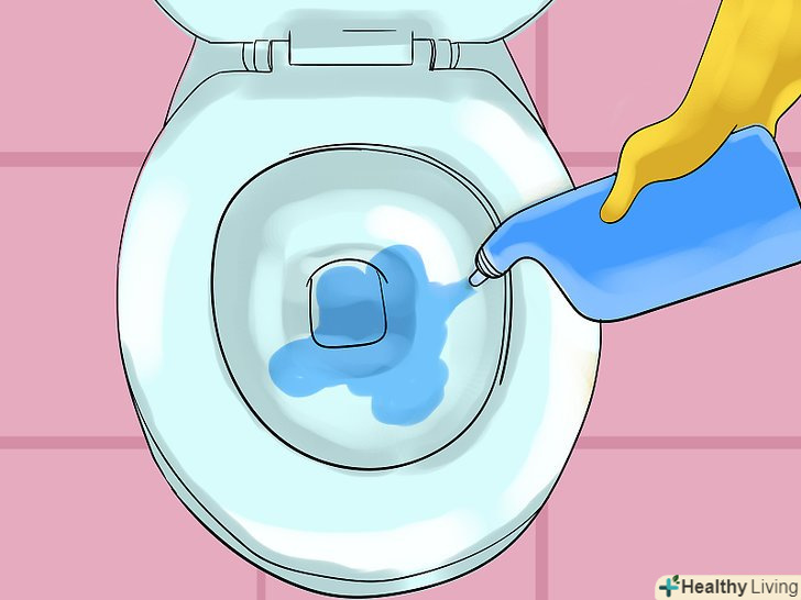 Промийте труби засобом для очищення туалету. завершивши роботу, використовуйте вантуз, щоб усунути залишки засмічення. Потім додайте в унітаз засіб для очищення бачка і змийте воду кілька разів. Хімічний очищувач розчинить і видалить залишки забруднення в трубах, а в якості бонусу ви отримаєте чистий і продезінфікований унітаз. [9]- Використовуйте засоби, призначені спеціально для туалету. Засоби для водостічних труб можуть роз'їдати оцинковані сантехнічні труби і пошкодити септичну систему. [10]