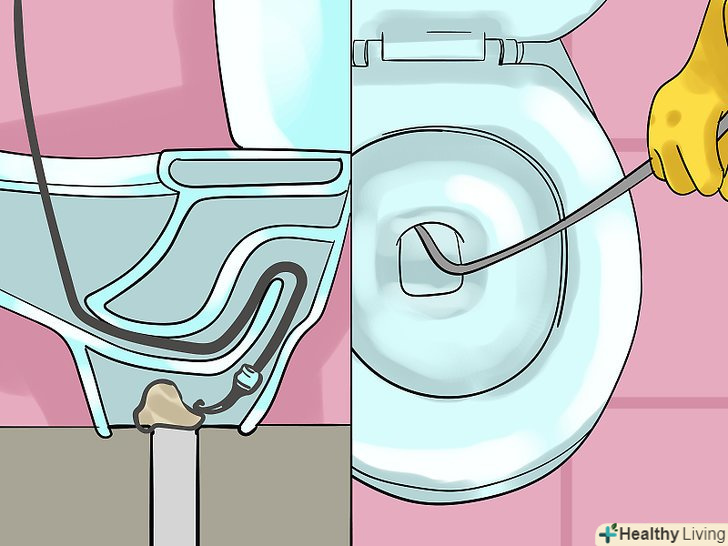 Одягніть рукавички. унітаз-брудне місце, тому надіньте пару гумових рукавичок, щоб захистити руки від сміття і бруду. У туалеті повно мікробів, тому захист рук запобіжить можливі інфекційні захворювання. Закінчивши роботу, викиньте рукавички в сміття і кілька разів вимийте руки під гарячою водою з антибактеріальним милом. [7]- Відходи, які захопить кінець бура, потрібно буде знімати руками.
