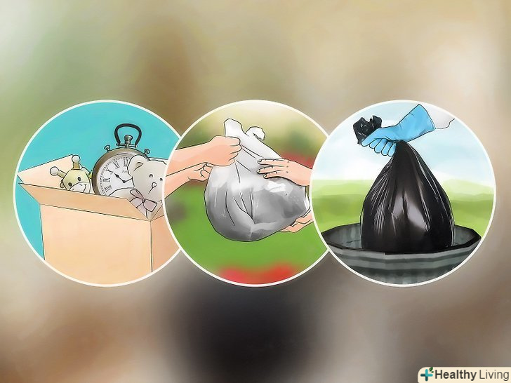 Придумайте систему сортування. в одну купу складайте сміття, в іншу — речі, які ви хочете віддати, в третю — те, що ви хочете залишити, і так далі.- Складіть все сміття в один пакет. Можливо, вам доведеться викинути речі, які вам вже не потрібні, але які ви не зможете віддати іншим. Будьте чесні самі з собою і постарайтеся згадати, коли в останній раз ви користувалися цією річчю. Якщо більше півроку тому, то ця річ вам не потрібна.