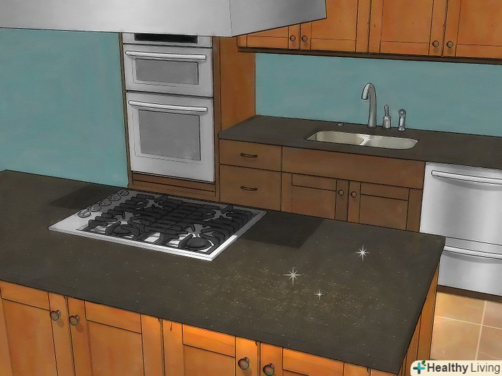 Звільніть робочу поверхню. безлад на робочій поверхні робить кухню захаращеною. Розкладіть всі речі по місцях. [4]- Закріпіть на стіні над робочою поверхнею рейлінги і підвісьте на них кошики або відерця для зберігання цукру, масла та інших речей. Так ваша кухня буде виглядати акуратніше, і наводити порядок стане простіше. [5]