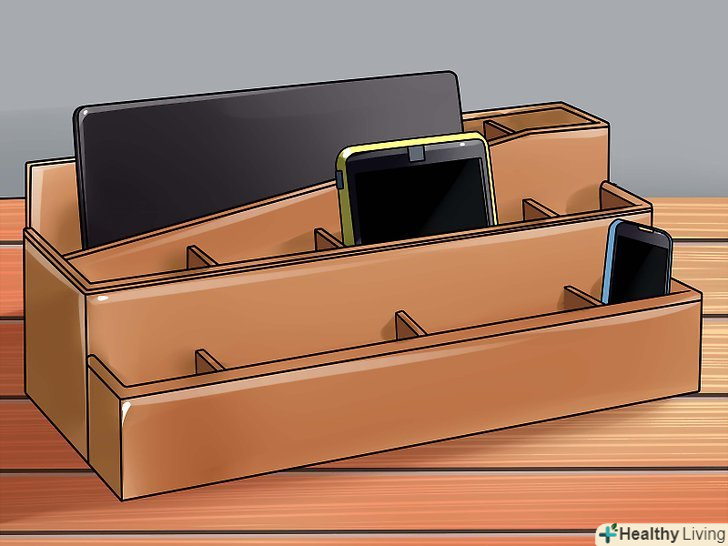Виділіть місце для зарядки всієї електроніки. кладіть всю дрібну електроніку (телефон, фотоапарат, планшет) в спеціально виділене місце разом із зарядними пристроями.- Ви можете також придбати підзарядну станцію, що дозволяє заряджати безліч пристроїв одночасно. Таким чином, дроти не будуть плутатися і створювати безлад. [9]