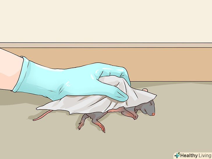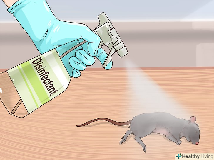 Приберіть мертвих щурів. одягніть гумові або латексні рукавички. Обприскати мертвого щура дезинфікуючим засобом або розчином відбілювача і води в співвідношенні 1:10. На п'ять хвилин залиште розчин на Мертвому щурі. [10]