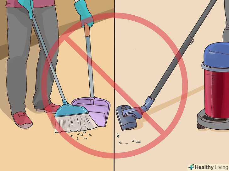 Не підмітайте і не пилососьте щурячий послід. це призведе лише до того, що патогени виявляться в повітрі, а також на мітлі і всередині пилососа. Прибирайте послід тільки магазинними дезінфікуючими засобами або 10% хлорним розчином відбілювача. Зберіть послід паперовими рушниками, змоченими в цьому розчині.
