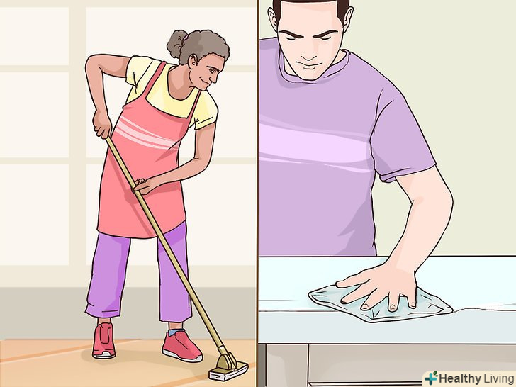 Протріть підлогу та полиці оцтом. обприскати перекис чистим білим оцтом і начисто витріть підлоги і полиці. Потім змочіть швабру в магазинному дезінфікуючому засобі або 10% хлорному розчині і промийте її гарячою водою. Після цього тут же позбудьтеся від усіх використаних паперових рушників і не забудьте викинути свої гумові або латексні рукавички. Рукавички також можна ретельно вимити в гарячій воді з милом.