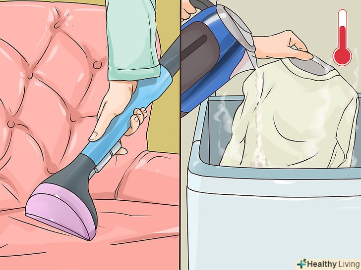 Почистіть меблі і виперіть одяг. меблі, на якій був послід, необхідно почистити парою або вимити шампунем. Складіть весь робочий одяг в пральну машину і виперіть її з миючим засобом і в гарячій воді. Взуття, в якій ви прибирали послід, помістіть в пральну машину разом з одягом. [7]- Вручну виперіть одяг і взуття, яка не придатна для машинного прання. Виперіть їх в гарячій воді і з пральним порошком.