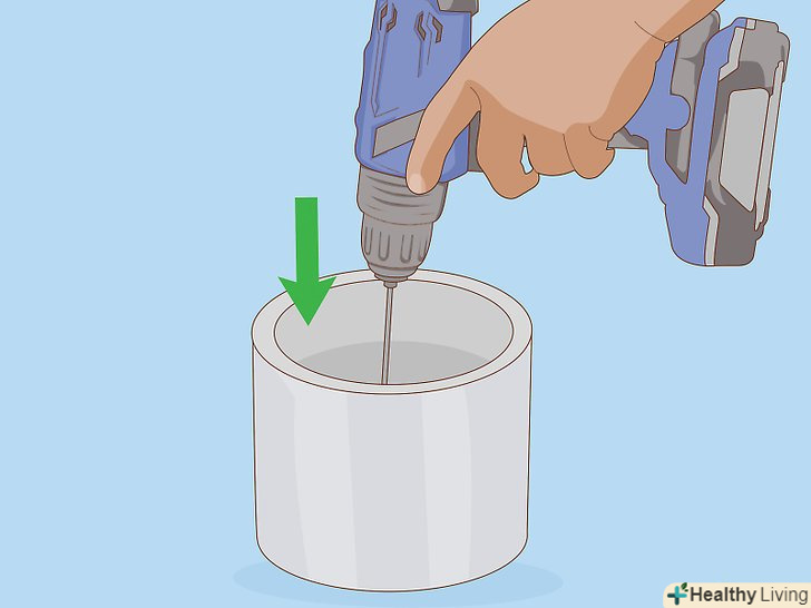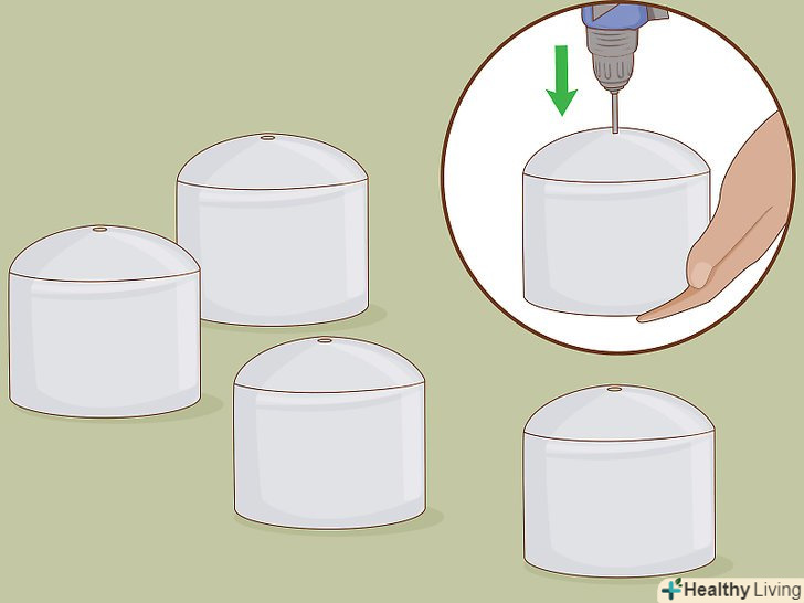 Просвердлите отвори в чотирьох заглушках. відзначте перманентним маркером центр на чотирьох заглушках і просвердлите в цьому місці отвір свердлом діаметра 1,6 см (5/8 дюйма). [9]- Під час роботи з електроінструментом завжди використовуйте захисні окуляри і рукавички.