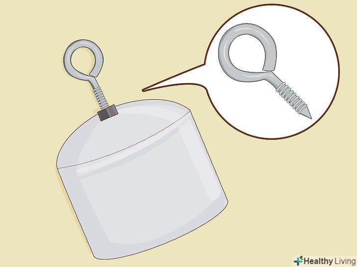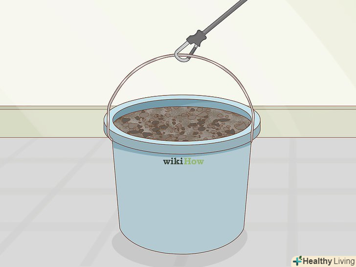 Прив'яжіть еластичний трос або мотузку до ручки кожного відра. якщо ви використовуєте трос, його можна закріпити на ручці за допомогою затиску. Мотузку треба прив'язати до ручки відра надійним вузлом. Довжина мотузки повинна бути достатньою, щоб вона дотягувалася до верхньої поперечини каркаса і ще вистачило на вузол. Трос повинен розтягуватися на таку ж відстань. [7]