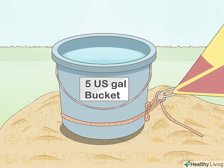 - Якщо ви використовуєте в якості баласту воду, відро повинно стояти на землі, поки ви його прив'язуєте до намету. Краще наповнити відро водою безпосередньо біля шатра, щоб не розплескати якомога менше води.