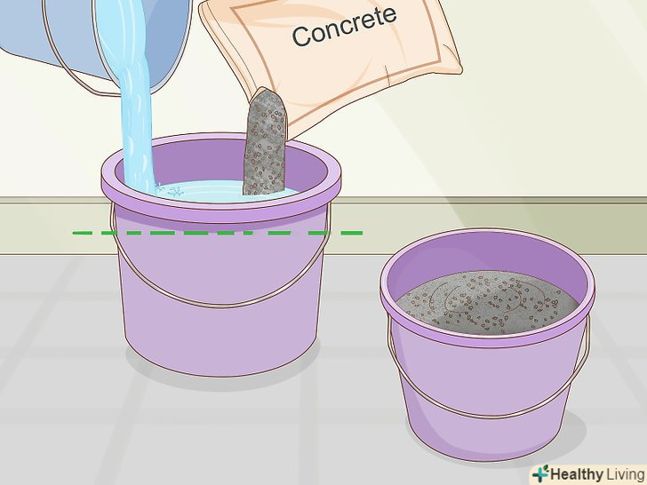 Наповніть відра бетоном, і у вас вийдуть постійні обважнювачі для шатра. деякі власники наметів і тентів вважають за краще мати під рукою готовий обважнювач. Щоб виготовити такий обважнювач, змішайте суху бетонну суміш з водою у відповідність з інструкцією виробника і залийте відра бетоном наполовину. Використовувати відра для інших цілей вже не вийде, зате у вас будуть постійні, готові до використання обважнювачі для шатра. [6]