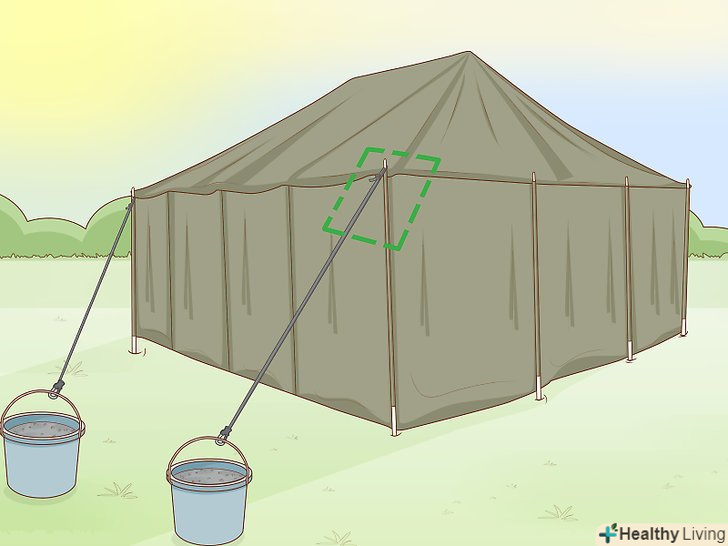Вам знадобиться 4-8 20-літрових відер для обважнення шатра. Плюс цього методу в тому, що порожні відра зручно зберігати і перевозити. Відра-хороший варіант обважнення для шатра, якщо ви точно знаєте, що там, де буде стояти намет, є вода, пісок або гравій. Краще використовувати відра з ручкою — до неї зручно прив'язати мотузку. [4]
