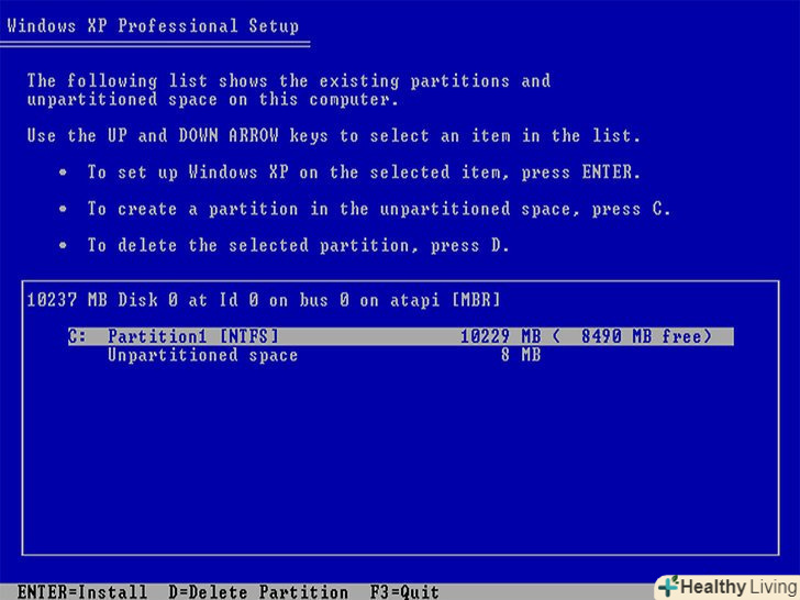 За допомогою клавіш зі стрілками знайдіть і виділіть розділ, який ви хочете видалити. натисніть D (для видалення), а потім натисніть L (для підтвердження). Після цього установник визначатиме віддалений розділ як "нерозподілений простір". Повторіть описану процедуру, щоб видалити інші розділи.