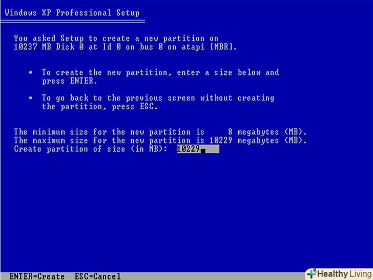 Для створення нового розділу виділіть "нерозподілений простір" і натисніть Enter, щоб створити новий розділ для установки на нього Windows.