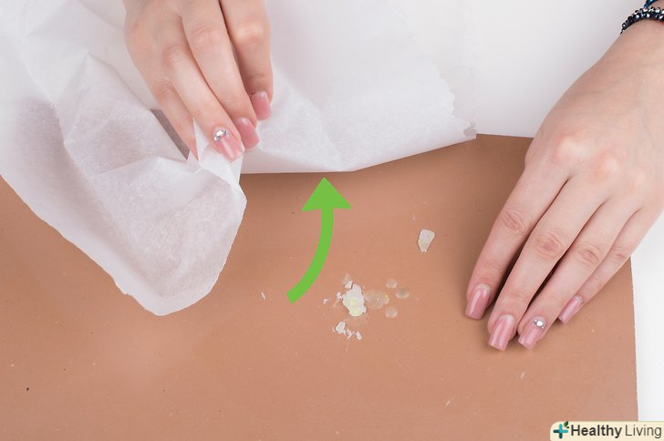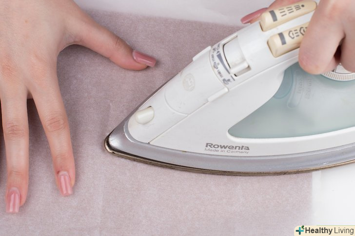 Обережно пропрасуйте пляму праскою через папір. не варто тиснути на праску занадто сильно або надовго затримувати його в одному місці, так як необхідно уникнути подальшого проникнення оплавленого речовини вглиб волокон тканини або килима. Мета полягає в тому, щоб змусити пластик або віск прилипнути до паперу.