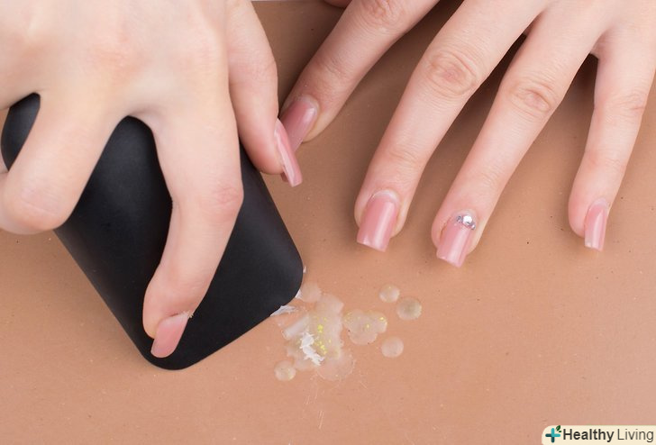 Сковирніте речовина з поверхні шателем або чимось аналогічним. від тепла пластик або віск розм'якне і його можна буде почати зчищати з поверхні за допомогою якого-небудь предмета з плоским і досить гострим краєм. Вам доведеться трохи попрацювати, але будьте обережні, щоб своїми діями не подряпати і не пошкодити поверхню, що очищається.- Якщо у вас немає під рукою шпателя, то замість нього можна взяти ніж для масла або бритвене лезо.