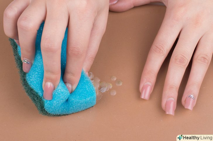 - Якщо ви не хочете використовувати для обробки поверхні таке потужне хімічний засіб, як ацетон, можна самостійно приготувати засіб для чищення з більш натуральних інгредієнтів. Часом із завданням настільки ж успішно справляється паста з харчової соди і оцту, якщо її втерти в оплавлене пляма пластика. [11]