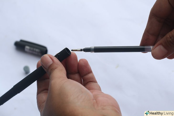 - Якщо кулька в стрижні рухається нормально, але у вас під рукою немає запасного стрижня, залийте чорнило з іншого стрижня. Використовуйте ватку, щоб проштовхнути чорнило з одного стрижня в інший, зістикувавши кінці стрижнів разом.
