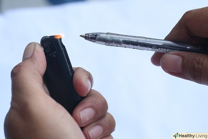 Візьміть запальничку і потримайте кульковий кінчик ручки над її полум'ям. робіть це протягом нетривалого часу, інакше кінчик може вибухнути! Після цього спробуйте розписати ручку на щільному папері.