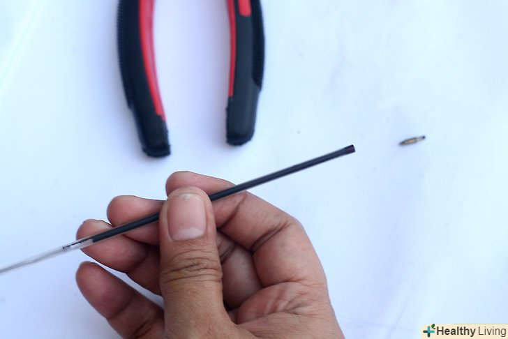 Змочивши дріт в рідині для зняття лаку, просуньте її в стрижень, зібравши на цей дріт висохлі чорнило. дріт стане брудною. Для цієї мети добре підійде Гітарна струна діаметром 0,25 мм — прочистіть нею стрижень до самого кінця (кульки). Рідина для зняття лаку послужить розчинником.
