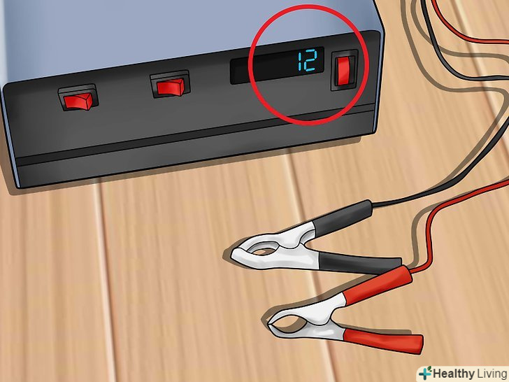 Використовуйте зарядний пристрій з відповідною вихідною напругою. Необхідна потужність зарядного пристрою залежить від марки автомобіля і акумулятора. Як правило, акумулятори розраховані на 6 або 12 вольт, але для різних моделей можуть знадобитися Зарядні пристрої різної потужності [5] .- Деякі Зарядні пристрої управляються вручну, тобто їх необхідно вимкнути після повної зарядки акумулятора, інші ж вимикаються автоматично. За винятком цього, а також невеликих конструктивних відмінностей всі зарядні пристрої схожі між собою і мають однаковий принцип дії.
