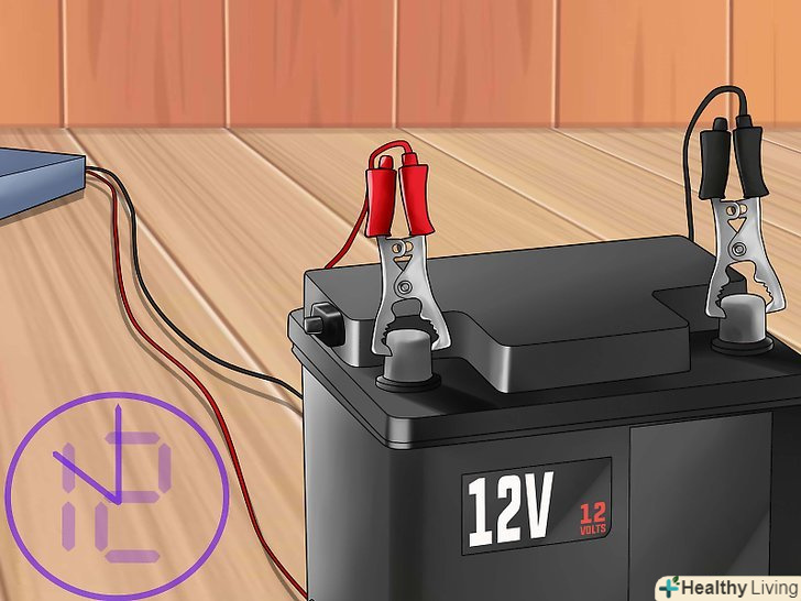 Зачекайте, поки акумулятор зарядиться повністю. залежно від конкретного акумулятора та використовуваного зарядного пристрою це може зайняти 8-12 годин. Якщо Ви користуєтеся автоматичним зарядним пристроєм, воно вимкнеться, як тільки акумулятор зарядиться. Якщо ж ви ваш пристрій управляється вручну, перед його вимиканням доведеться перевірити, зарядився чи акумулятор.- Ви можете дізнатися, як зробити це за допомогою вольтметра, прочитавши цю статтю .