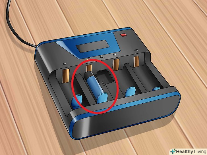 Помістіть батарейки в зарядний пристрій належним чином. а саме, позитивні (+) полюси батарейок повинні стосуватися позитивних клем пристрою, а негативні (-), відповідно, негативних.- На багатьох мережевих зарядних пристроях наведена схема правильного розміщення батарейок. Як правило, плоский кінець батарейки слід уперти в пружинку, а опуклий – в плоский ділянку гнізда зарядного пристрою.