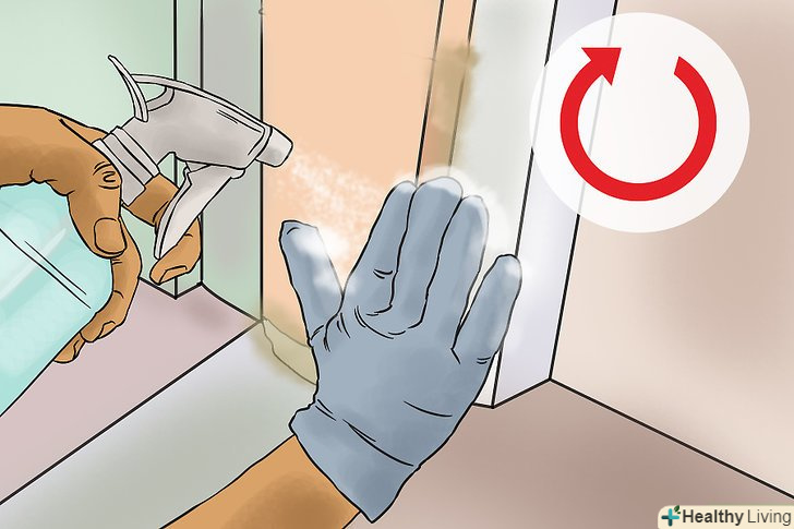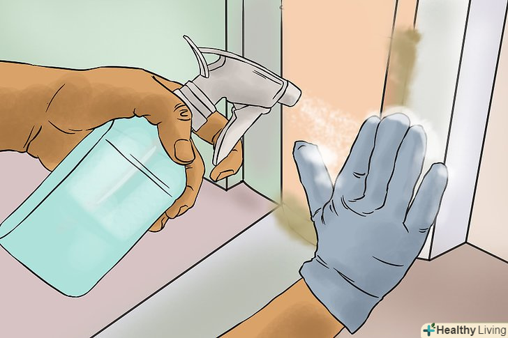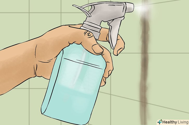 Розпиліть розчин на ділянки з великою кількістю цвілі. якщо не вдається впоратися за допомогою вологої ганчірки, то перелийте розчин в розпилювач. Нанесіть розчин на силіконові поверхні залиште на п'ять-десять хвилин, після чого знову обробіть губкою.