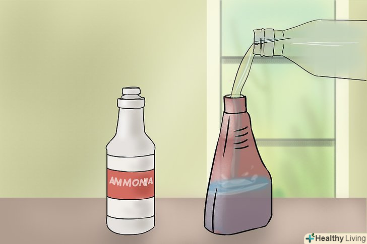 Підготуйте розчин. спочатку потрібно забезпечити хорошу вентиляцію в тому приміщенні, де ви будете готувати розчин, якщо роботи будуть проводитися в іншому місці. Потім змішайте рівні частини нашатирного спирту і води прямо в розпилювачі або в іншій ємності і перелийте розчин за допомогою воронки. [3]