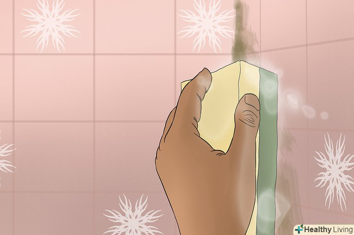 Обробіть незначну ділянку цвілі серветкою, просоченою розчином. якщо ділянка цвілі не надто великий, то візьміть чисту губку, змочіть в розчині і відіжміть зайве. Потім протріть силікон вологою губкою. [7]