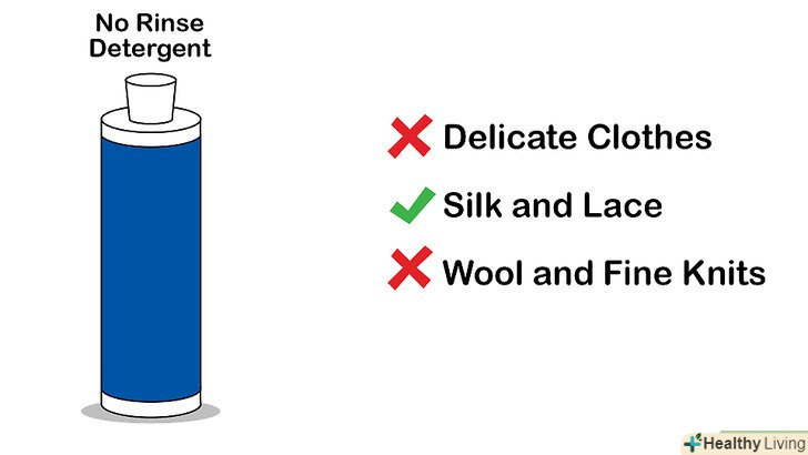 Спробуйте застосувати миючий засіб, що не вимагає додаткового ополіскування, щоб випрати шовк і мереживо. одяг з таких делікатних тканин, як шовк і мереживо, краще прати миючим засобом, який не вимагає застосування кондиціонера або ополіскувача після замочування в ньому речей. Це полегшить процес прання шовку і мережива і гарантує відсутність деформації тканини через зайвого полоскання. [2]- Засоби для прання, які не потребують додаткового застосування ополіскувачів можна знайти в інтернет-магазинах або придбати в місцевих торгових точках. Наприклад, популярним засобом такого плану є"Ласка".
