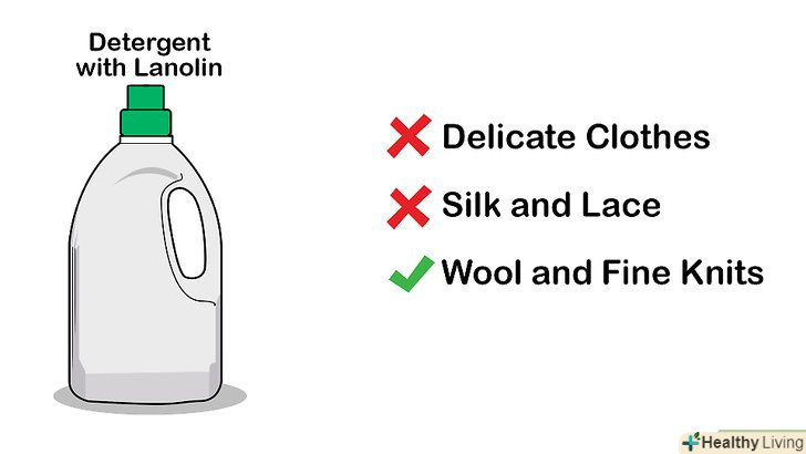 Використовуйте миючий засіб з ланоліном для прання вовни і трикотажу. ланолін – натуральне масло, що виділяється шкірою овець для захисту вовни від вологи. Крім того, ланолін надає шерсті і трикотажу м'якість. Застосовуйте миючий засіб з ланоліном для прання будь-яких вовняних і трикотажних речей, щоб вони залишалися м'якими і не пошкоджувалися під час прання. [3]- Такі засоби для прання можна знайти як в місцевих, так і в інтернет-магазинах.