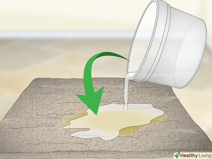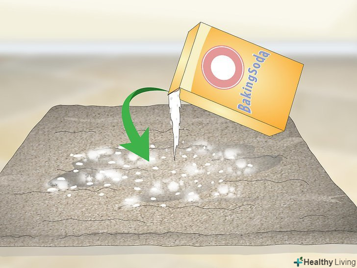 Посипте пляму харчовою содою. підійде звичайна харчова сода. Нанесіть тонкий шар соди на всю поверхню плями. [6]