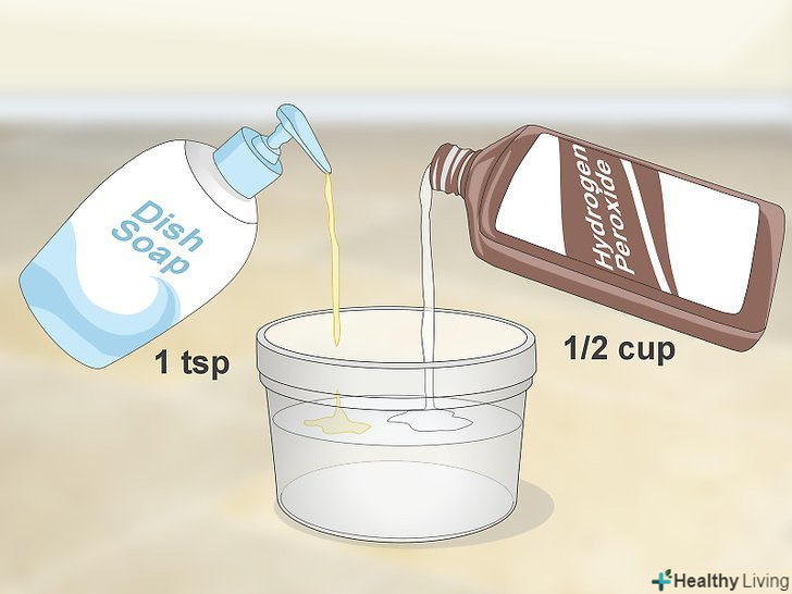 Змішайте ½ чашки (120 мл) перекису водню з 1 чайною ложкою (5 мл) засобу для миття посуду. візьміть 3-відсоткову перекис. Ретельно перемішайте суміш. [7]