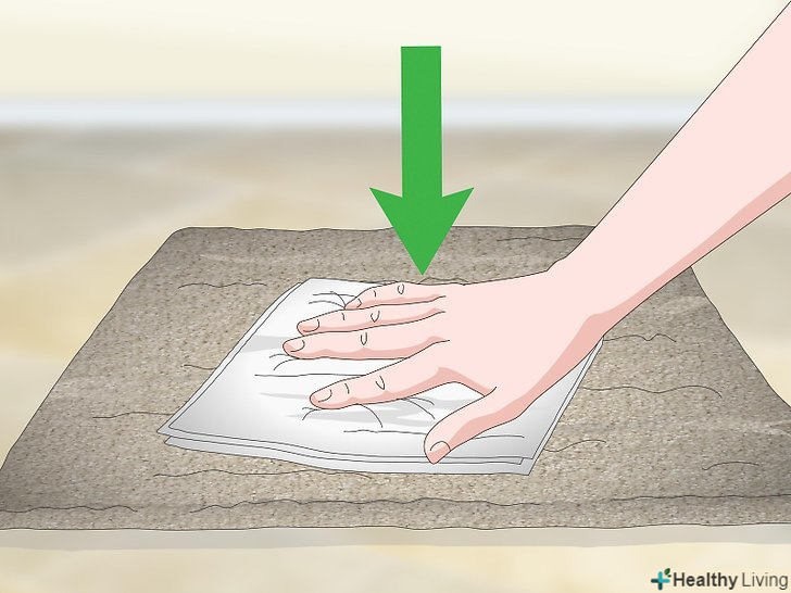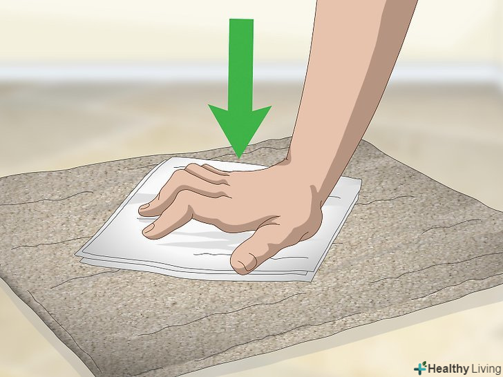 Промокніть пляму паперовим рушником, щоб прибрати з килима зайву вологу. Вам може знадобитися кілька паперових рушників.