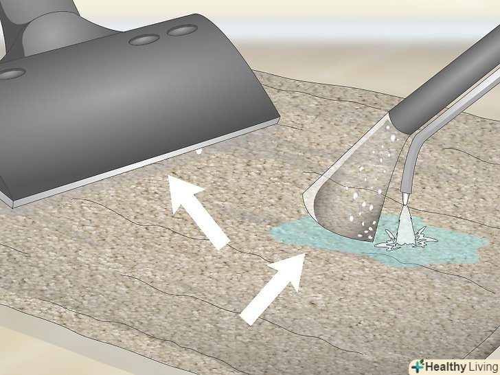 Промокніть пляму паперовим рушником. постарайтеся, щоб паперовий рушник ввібрав якомога більше рідини з мильної суміші. Якщо у вас не виходить видалити зайву рідину, пляма можна обробити пилососом. [2]