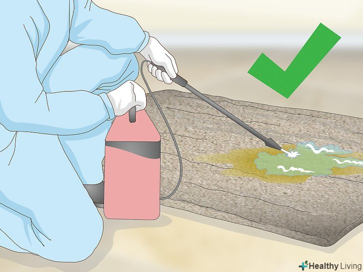 Повторюйте кроки з обробкою плями розчином і промакиванием до тих пір, поки пляма не зникне. в кінці не забудьте обполоснути оброблювану ділянку чистою водою, щоб в ньому не залишилося мила. Після закінчення висушіть пляму паперовим рушником.